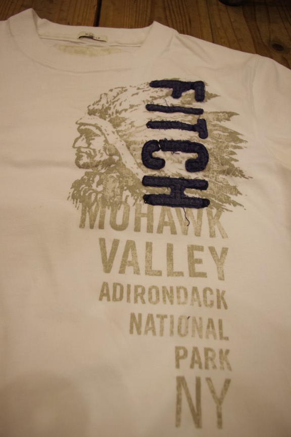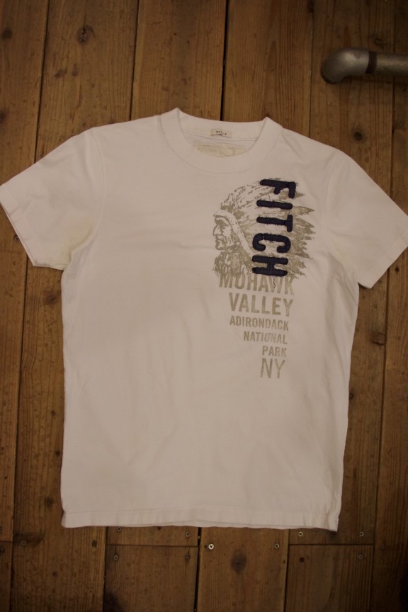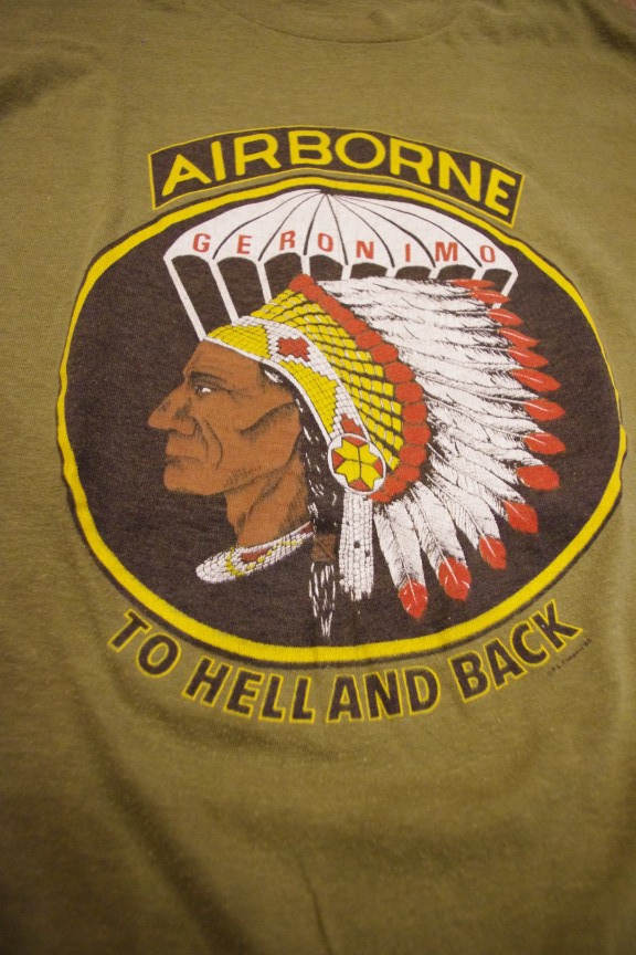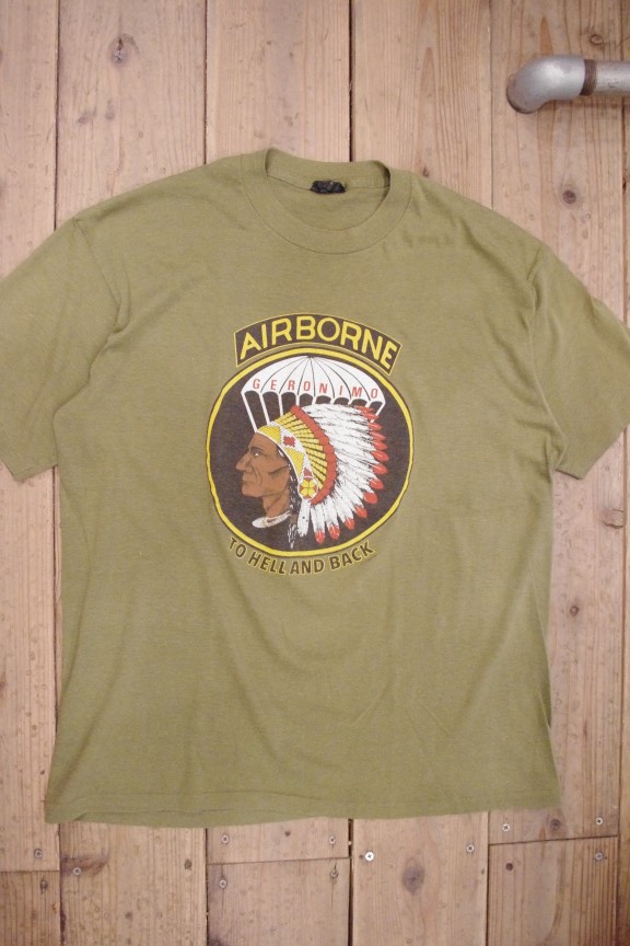 90's初期(Mぐらい) 5040円(DEAD STOCK) ご老体の為、留守番を頼まれている酋長のプリントです。 Abercrombie&Fitch(Mぐらい) 5040円 AIRBORNEなのに羽根飾りのせいで飛行機に乗れず、 これまた留守番のインディアンのプリントです。 Military Tee(M?ぐらい) 留守番って・・・イヤだなぁ~。 人気のインディアンモチーフなので気になる方はお早めに!! |