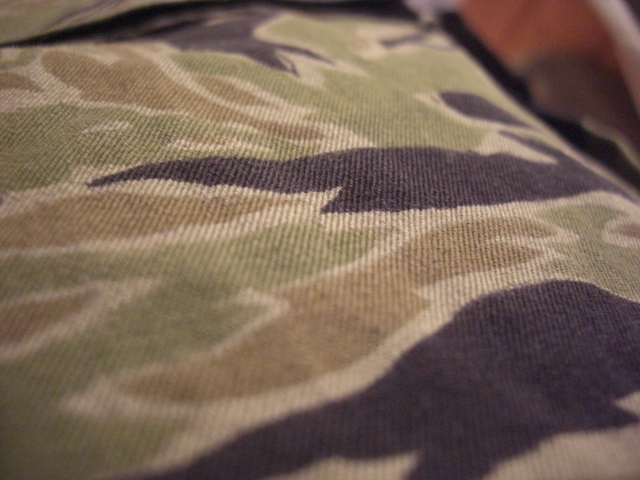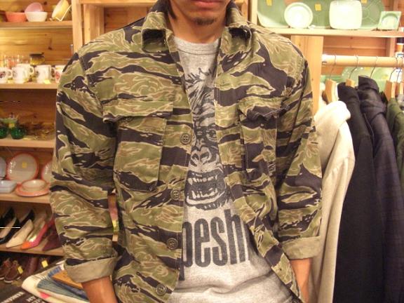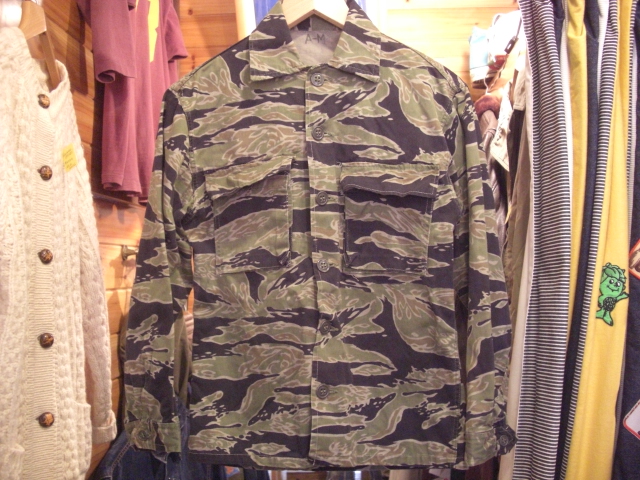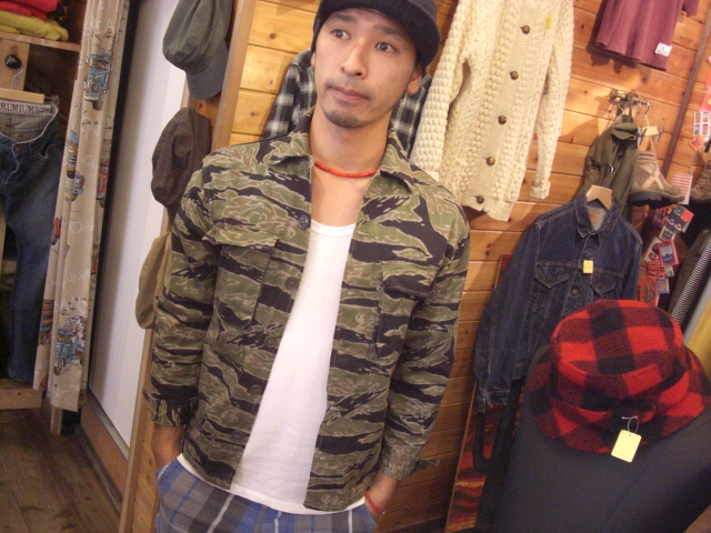 テレビは基本的に観ないのでブログのみです、キモいですね。笑 さてさて昨日のBoologから半日も経たず更新ですね、記録的やん!!笑 ということで・・・今日は何の紹介しようかな~。 古着屋のくせに古着を紹介していないので古着の紹介でもしよっかな? イッパイ紹介したいのあるんですが、悪いクセで一気にしようとするので1つ選ぼう。 ・・・とすると悩んでしまって投げ出します。笑 しかし今日は諦めません!!載せちゃいます!! 60'S TIGER STRIPE CAMO. JACKET ベトナム戦争時代のアイテムになります~、名前が『タイガーストライプですよ』カッケ~。 『A-M』表記なので、サイズは小さめになります~。 この作りが嬉しい限りですね、物を入れた時の膨らみ方とかニヤニヤします。 携帯では伝わらないとは思いますが、このガッシリしててザラ感のあるコットンが至極良いです。 来年は寅年というのもありますので、大変競争率の高いアイテムとなります。 電話でのお問い合わせ、通販はお断りさせて頂きます、ご了承下さい。 ・・・ とかボクが言うと思いますか?笑 書きながらニヤニヤしてました。笑 探してたらスタイルサンプル用に撮ってたのがありました。 身長175cmのなおやっちが着て、少しキツいかなって感じ。 袖は少し短いので曲げて着る感じになると思いま~す。 『ヒゲルックを見たい』との声がありませんでしたので、撮りました。 167cm 63kg ムダな感じにゴツめ 袖は一回折りしてます。 ヒゲルックは手が長いので同じ身長ぐらいの人だと全然問題ない袖の長さです。 着てみたらカッコ良かったのでやっぱり売りません。 ・・・もちろんウソです。笑 年明けても残ってたら・・・欲しい、欲し~の~☆ 着ないと良かった・・・笑 そんな感じで、気になる?木になる?まさか・・・毛になる?!価格ですが。 小さいので逆に高くしようかと思ったのですが・・・諦めます!! 31,290円!! 欲しいよ~、欲しいよ~、本当に欲しいよ~(本当に欲しいです。笑)。 あ、背中に少~し日焼けがあります本当に少~し。 では、今日もゆっくり頑張りま~す☆ |