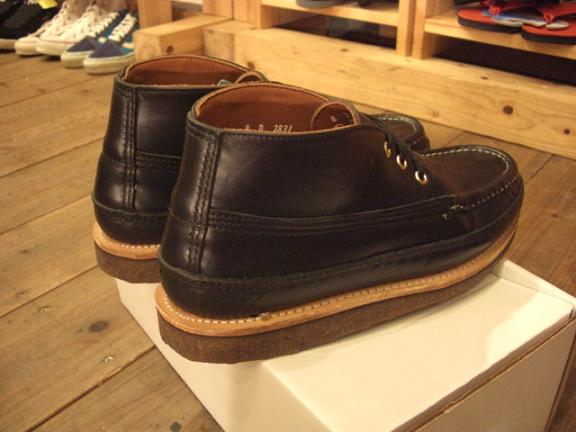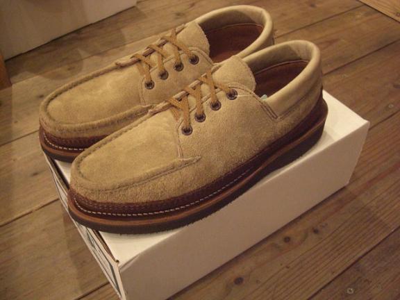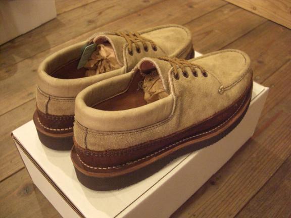 お買い上げ頂いた金額に対して、 なんと最大50%分の商品券として還元します!! その方法とは・・・完全に運が試される、『くじ』です!! しかも今回は更に・・・ハズレはありません!! 今日お客さんから『メールの時、冷たいですね。』と言われ落ち込んでいます。笑 説明しよう!! それは、単純にそう単純に『絵文字』の使い方が分からないからである!! 可愛い女の子とメールする時は別ですが・・・ といっても2、3個しか使えません。笑 今度、誰か(可愛い子限定)絵文字の使い方教えて下さい・・・ さてさて昨日紹介させてもらいましたRussell Moccasin。 3足あったのですが、残り1足となりました!! ちなみに2人ともクジの結果は『10%』、ホッとしました。笑 次回の買い付けで同じ物はモチロン買えませんのでお早めに。 という事で、調子に乗って今日もRussell Moccasinの紹介。笑 『Russell Moccasin』その2 Price 57,750yen + tax Size 8 トリプルヴァンプ製法で作られている最高級のラインになります。 昨日のラッセルと似ていますが、3アイレットです。 ベーシックなクレイチャッカは3アイレットになります。 (画像をクリックすると大きくなります☆) コチラのラッセルもレザーのミッドソールを装備。 アウトソールは生ゴムソールをセレクトしているので、クッション性が高いです。 今日もバックで攻めてみます。 生まれたばかりの様なミッドレザーのベージュも、履き込むほどに色濃くなります。 育てる楽しみもある1足に仕上がっているのではないでしょうか? 10%だと5500円 20%だと何と1万1000円 30%で1万6500円 50%だと目を覆いたくなる27500円・・・ あ!! そういえば今日なんと50%分の商品券が出ました!! 佐賀のN君!! お友達の、お馴染みSイチロウ君は10%でしたが・・・笑 といった感じで、皆さん希望を胸に遊びに来て下さい☆ |