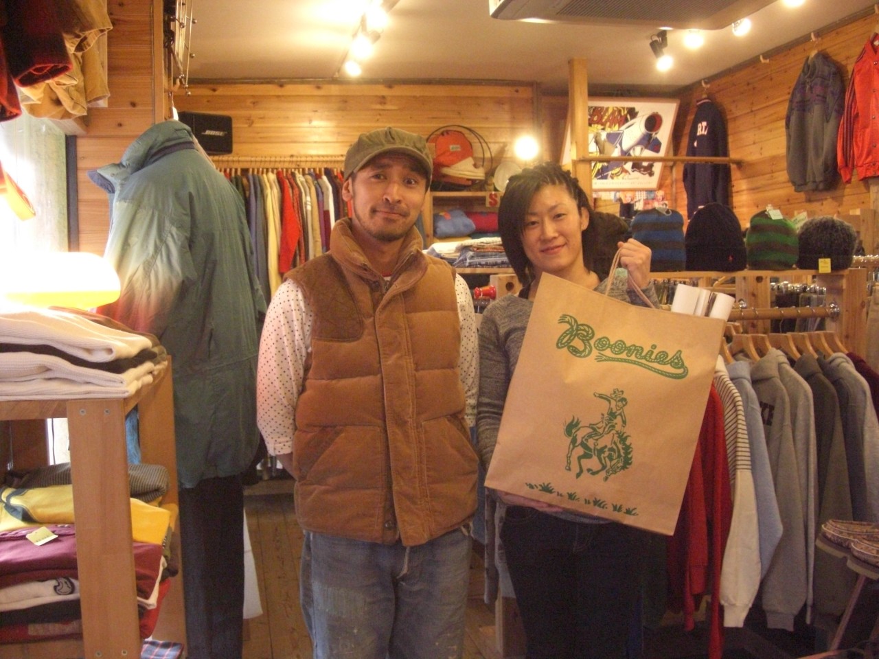 30日(水) 通常営業 31日(木) 12時~18時頃 ※31日の18時頃に来られる際は一度、 お店へ確認の連絡をお願いします。 新年は、元旦1日(金)から通常営業します。 宜しくお願いします☆ 『2010年版 BOONIESカレンダー』 お買上げのお客様に先着でプレゼント!! 数が減ってきました、急ぎましょう!! どうもこんばんわヒゲルックです!! もう年越しなのかと思うとビックリですね・・・早い。 今日もバタバタとした1日を送らせてもらいました☆ この時期になると、帰省組が来てくれます☆ こういう時にしか会えないお客さんもいるんで、来てくれた時に「年末か~」と思います。 そういう中でも嬉しいのは、お客さんがBOONIESを「お店」として利用してくれる事☆ 世間話もほどほど(?!)にみんな洋服を見てくれる、ヒゲルックを煙たがりながら。笑 僕自身は、単純に嬉しいのもあってバッチリ興奮気味なんです・・・笑 勝手に「オレに会いに来てくれた」って思ってるんで。笑 そんな中で恋愛相談とかされたりすると、もう・・・ね☆ ボーイズトークというよりガールズトークのノリです、完全に!!笑 しかも、パワーをセーブすることを忘れてバッチリ疲れます。 そして、お客さんに「きついよ~」「ねむいよ~」を連発。 それでも結局、お客さんは少しだけ笑ってすぐ洋服を見る・・・笑 今年は少しだけ甘えて31日は18時に閉める予定ですが、 その分パワーをチャージして新年1日から頑張りますよ~☆ 残りの日々を楽しく遊びまくりましょう!! 毎日が楽しすぎる~!! 年末年始はきついけど大好きだ~!! では!! |