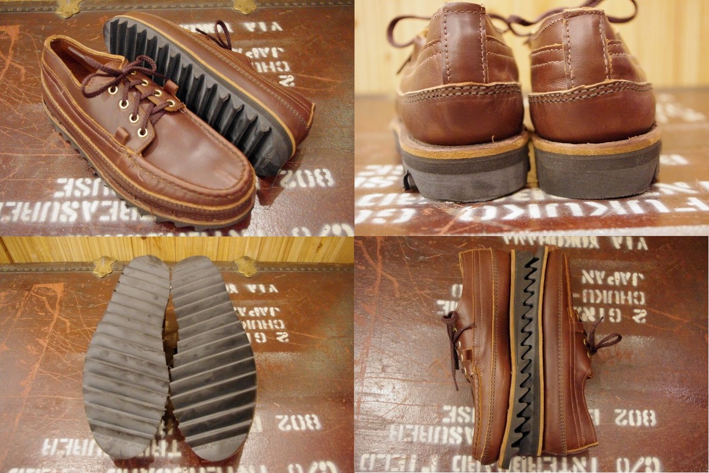 『Russell Moccasin Ripple Sole』 size:7D 57,750yen (コチラより) 岩肌などのデコボコした地面の上では高いクッション性を誇る本格的なミリタリー仕様のアウトソール. アッパーはタフなカウハイドを使用しています。 ギザギザのソールが抜群のグリップを発揮し、3枚革を使用したトリプルバンプソールがウエルト部分からの水の浸入を防ぎます。 ネペンテスの別注により誕生したこのモデルは重宝する事間違いなしです。 まさに贅沢品。笑 いやぁ~、欲しいわ・・・ローカットでトリプルバンプ・・・無駄なスペックの高さ。笑 シャークソールとも言われるこのソール、履いてみるとアラ不思議めちゃ履きやすいです。 普段スニーカー26.5㎝のヒゲルックでも全然履けます。 個人的にリップルソール大好きで、以前ラッセルに個人オーダーしたモデルもリップル。 何というか、単純に見た目の格好良さと履きやすさがポイント高いです。 売れ残ったらボクが引き取ります。笑 では!! 『BOONIES ONLINE SHOP』←をクリック◎ |