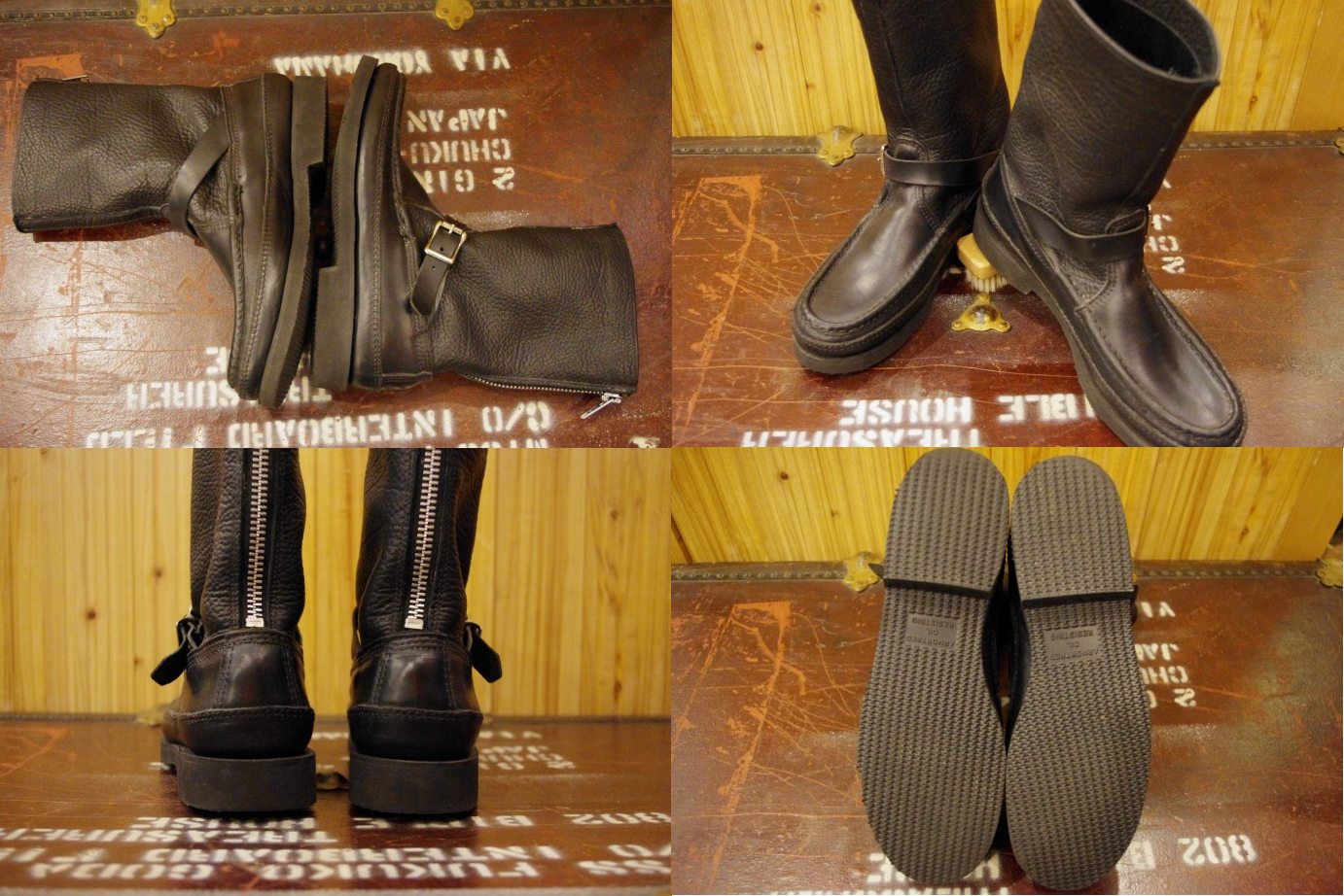 明日19日(土)は結婚式に出席の為、18時までの営業となります。 ちなみにヒゲルックは15時に早退させて頂きます。 大変ご迷惑お掛けしますが、どうぞ宜しくお願いします。 さてさて、一日空いてしまいましたが最後の1足の紹介。 『Russell Riders』 size:8 1/2D 57,750yen(コチラより) 国内でも取り扱っているお店は無いに等しいモデルです。 ナビゲーターレザーとウェザータフレザーのコンビがたまりません。 原型というか「ゼファーブーツ」と形は同じです。 ナビゲーターのしっかりした雰囲気とウェザータフの柔らかい革質。 そして着脱が容易なバックジップ、様々なスタイルに対応してくれること間違いなしです。 本格的にバイカー向けに作られたこのモデル。 人気のエンジニアとはひと味違った雰囲気を楽しんでもらいたいです。 履き潰した時の面構えが相当楽しみな1足です。 ハード過ぎてイヤだと言う声も聞こえる事もあります。 足に添うようなシルエットはパンツを選びません。 まさかのショーパンに。。。っていうのは極論ですよ。笑 個人的に履いてみて初めて気付く良さがありました◎ では!! 『BOONIES ONLINE SHOP』←をクリック◎ PR |