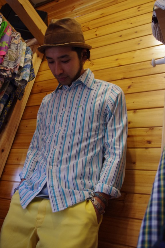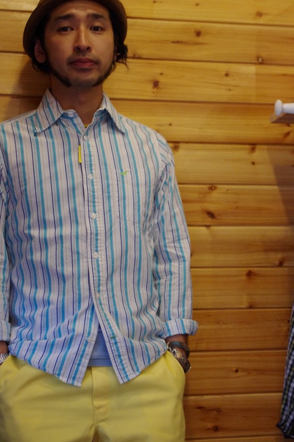 Twitterな んとか続いてます、フォローして下さいね☆ 今日もスタイルサンプル。笑 完全にこの世の終わりみたいな顔です。 (クリックすると大きくなります☆) SHIRTS:Hollister 5,040yen PANTS:Dickies 5,040yen SHOES:Russell Moccasin(詳しくはコチラより。) (クリックすると大きくなります☆) 夏を意識したスタイル。 気付けば暗い着こなしになっている毎日。 そんな毎日には"色"をしっかり出していきましょうよ。 「派手なのは・・・」 いいえ、季節感を出していきましょうよ☆ 間違いなく一日が明るくなりますよ。 (クリックすると大きくなります☆) そしてそして・・・ 本日21:00商品9点アップします!!!! その他、沢山のアイテムが入荷予定です☆ お待ちしておりま~す!! では!! |